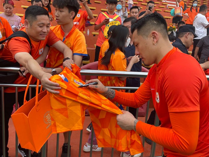 王大雷给球迷签名留念